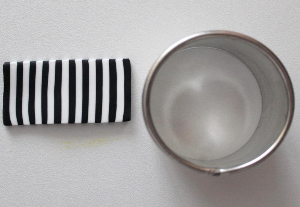 Conditionnez deux rectangles de Cernit noir et blanc et réalisez l’alternance rayée blanc et noir.