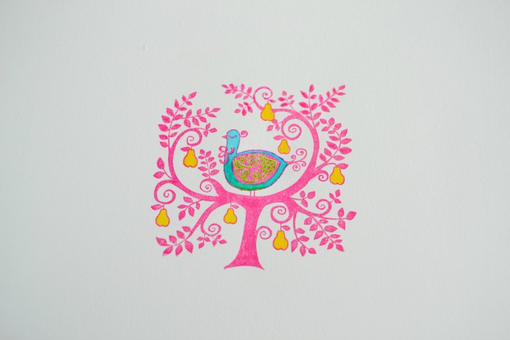 Tamponnez ensuite le dessin grâce à l’encre rose. Pour cette customisation, nous vous conseillions de le tamponner au centre.