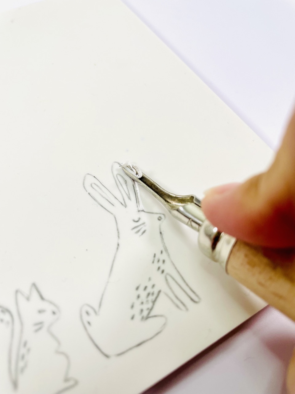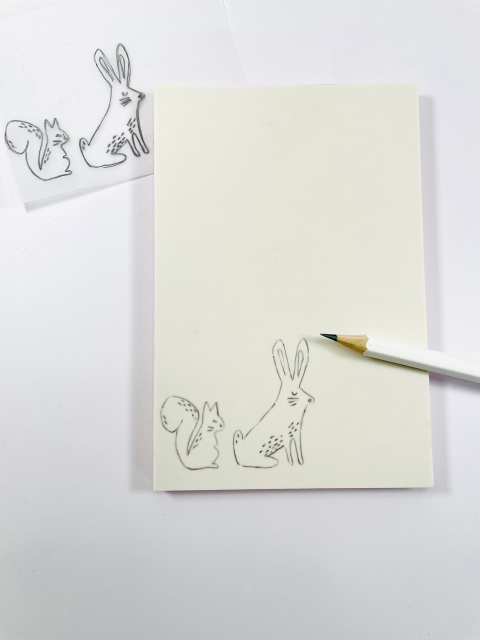 Nous vous conseillons de les décalquer (plutôt que de dessiner directement sur la gomme) : c’est une technique universelle, qui permet un report fiable, sans embûches.