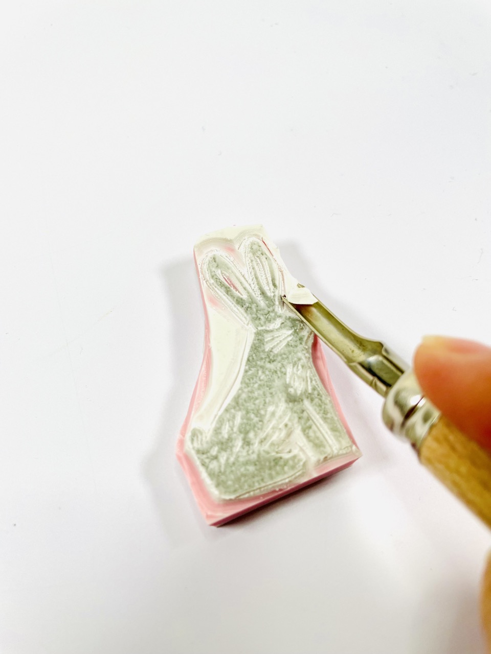 Avec un cutter, recoupez la gomme au plus près de votre motif, tout en laissant une marge de 2-3 mm autour. Conservez uniquement la partie que vous souhaitez utiliser.