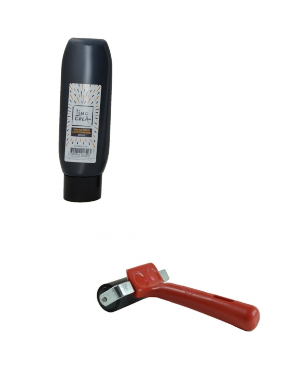 Traditionnellement, en linogravure, on utilise une encre en tube et un rouleau pour étaler l’encre sur le tampon.