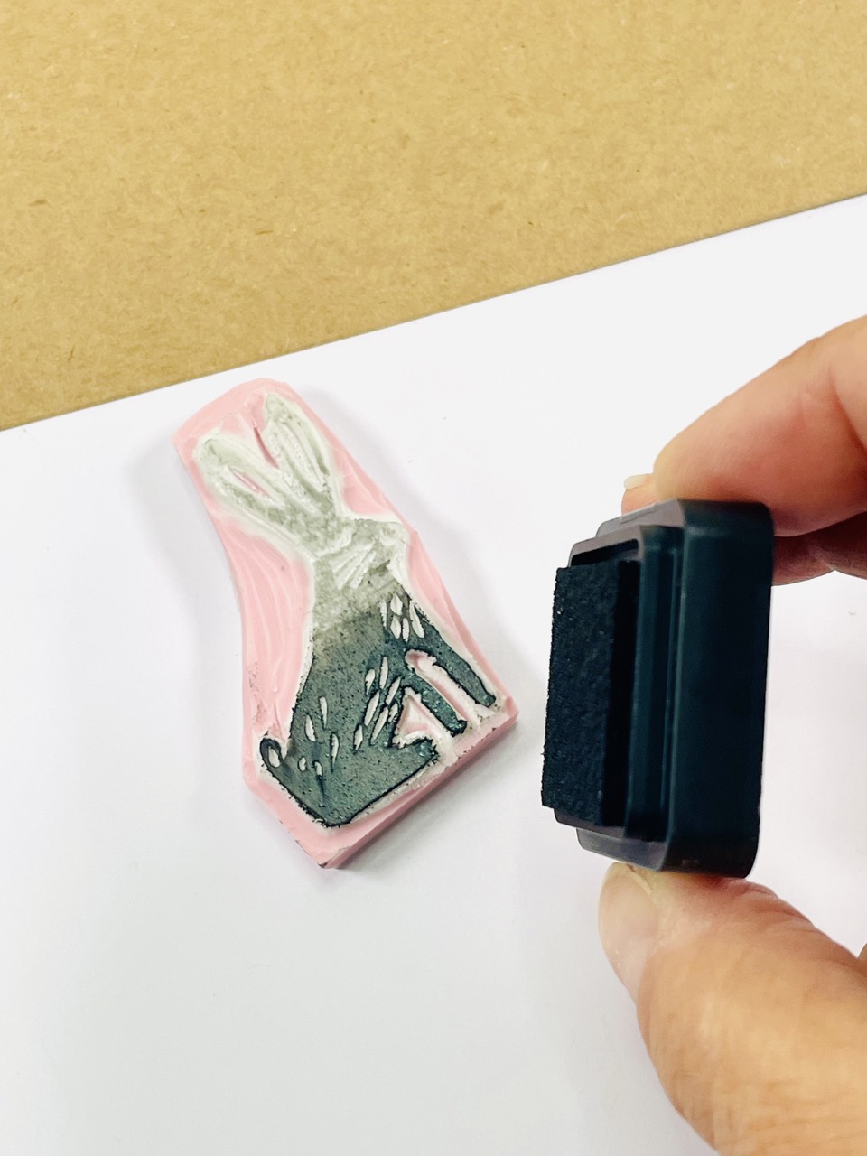 Encrez une première fois le motif en tamponnant l’encreur sur votre gravure.